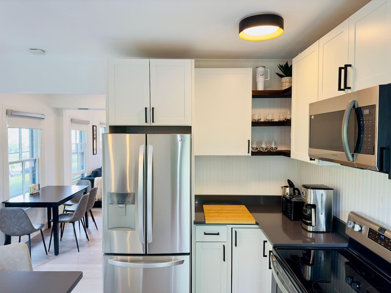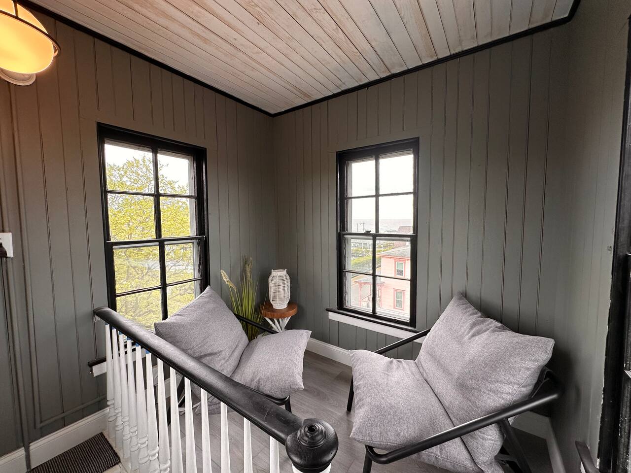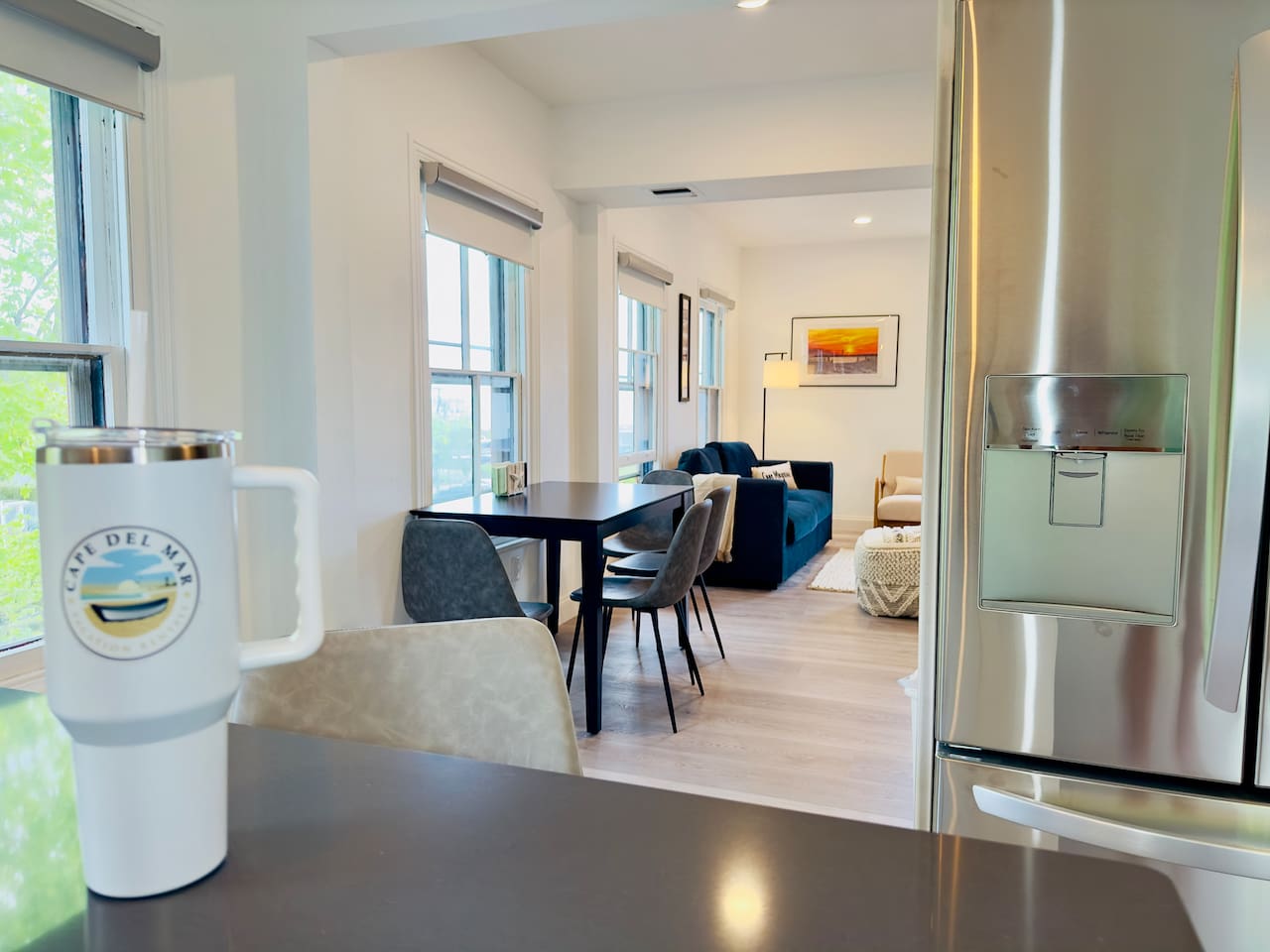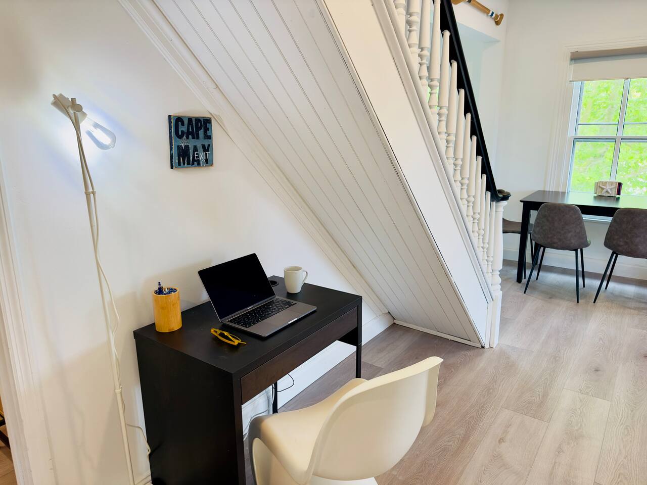 ☆☆ HIGHLIGHTS ☆☆ ✹ 2 spacious bedrooms; including a master suite with en-suite bathroom ✹ 2 full bathrooms ✹ Open-plan living area with large windows capturing ocean and town views ✹ Modern kitchen with high-end appliances and a 4-seater island ✹ Dining area adjacent to kitchen with ample seating ✹ Unique cupola with panoramic views and lounge chairs – perfect for sunset & wave watching ✹ Smart TVs in every room with access to Netflix, Amazon Prime, Disney+, and more ✹ 4 Complimentary beach passes and essential beach gear (only during the season, ie until mid September) ✹ Dedicated off-street parking and additional street parking ✹ Shared porch with traditional rocker chairs ✹ Fast Wi-Fi throughout the condo Guest Access: Entire condo is yours to enjoy, ensuring a private and uninterrupted experience. Keyless entry allows for a smooth self-check-in. Outdoor Space: Revel in the shared outdoor porch equipped with rocking chairs, ideal for relaxing and soaking in the coastal atmosphere. Activities/Attractions: Explore Cape May’s historic district, enjoy boutique shopping, or spend your days sunbathing and swimming at the beach. Don’t miss the local cuisine and the vibrant nightlife, all within walking distance! ★★ Book Today & Experience Cape May in Style! ★★ Other Things to Note: Ideal for up to 6 adults and 2 children. Check-in between 4 PM and 10 PM; Check-out at 10 AM. Embark on a vacation where the sea meets comfort and style. Reserve your stay at Cape Belvedere for a truly spectacular escape!
