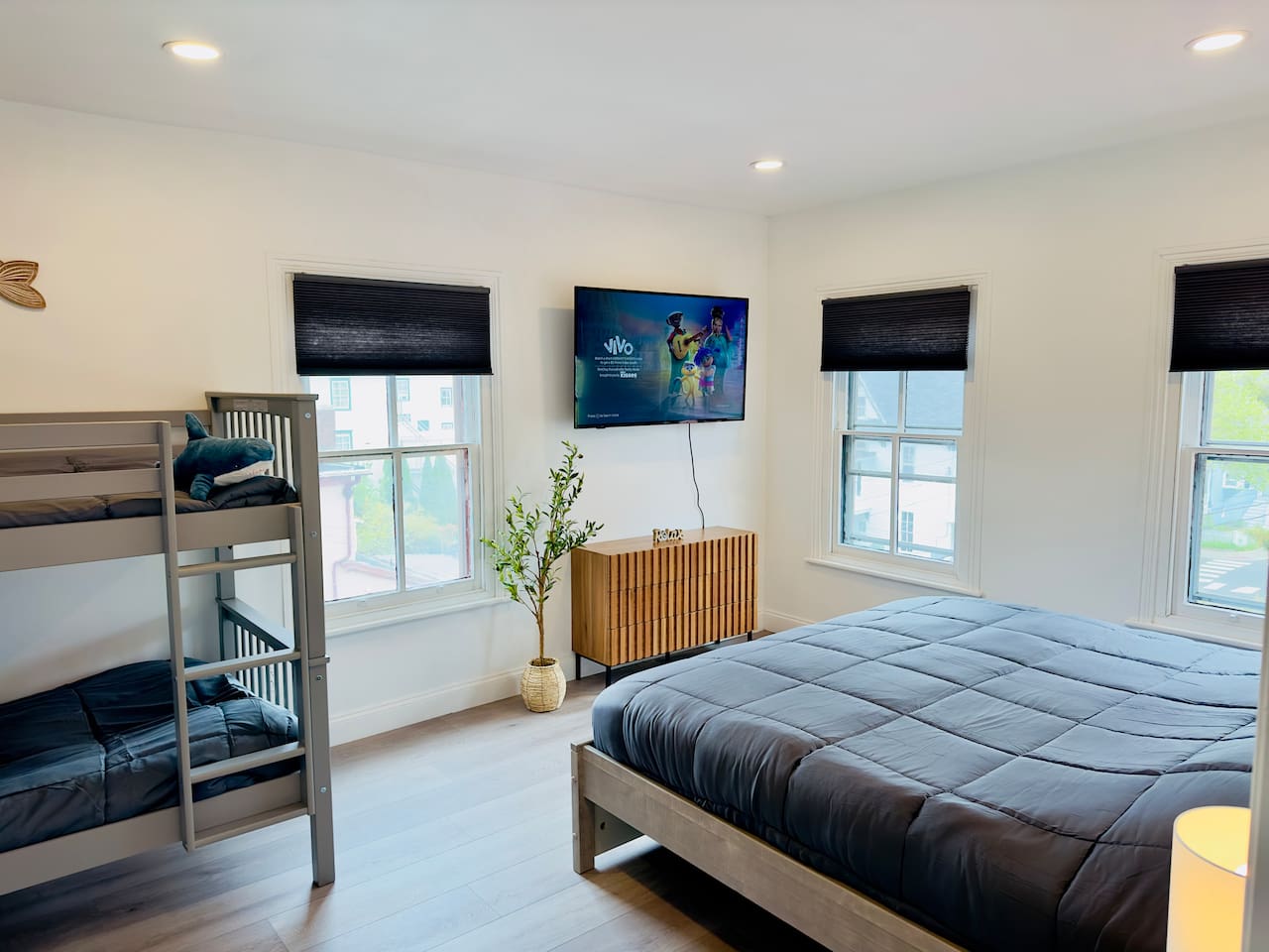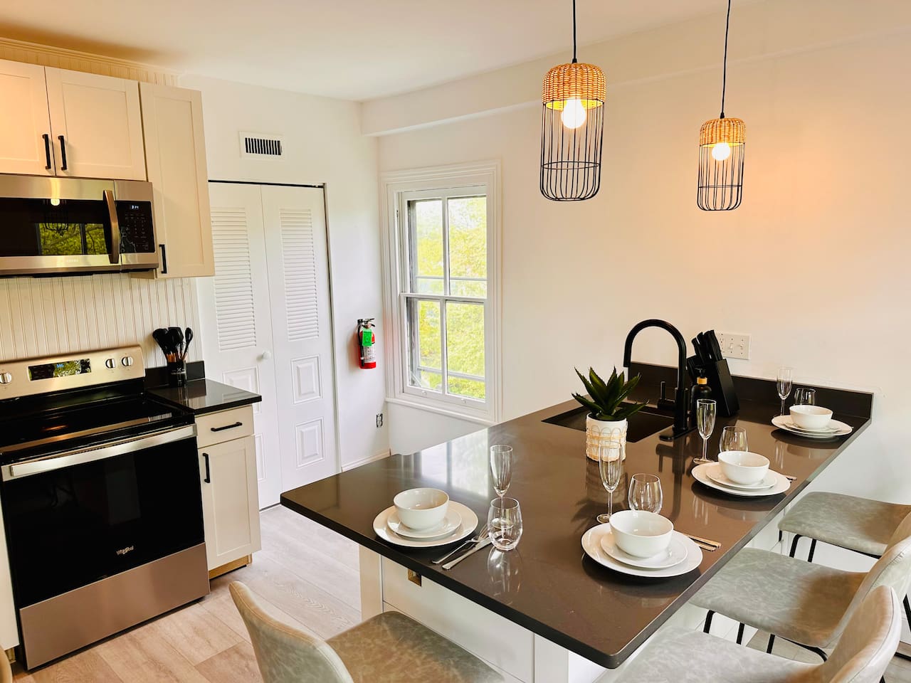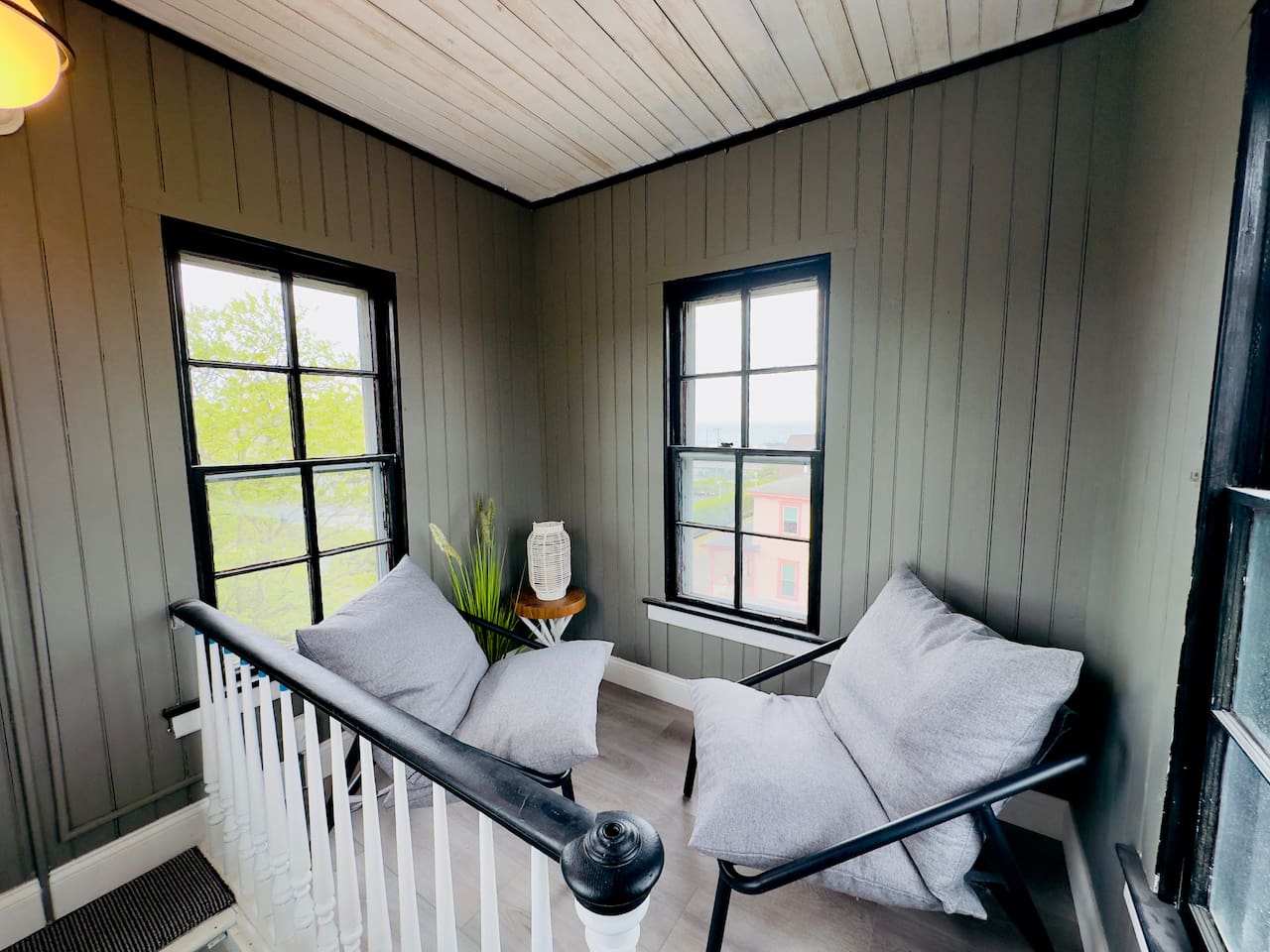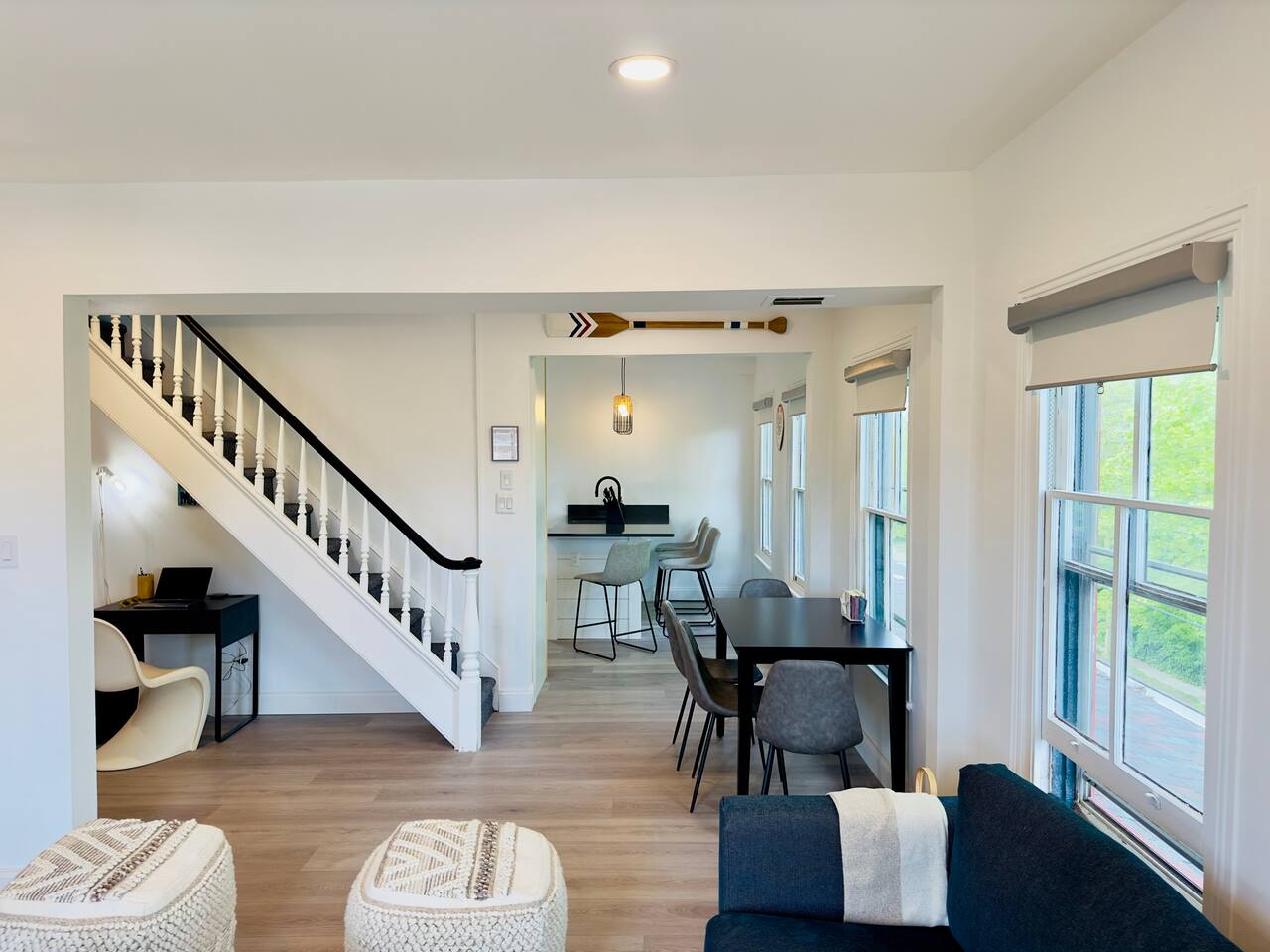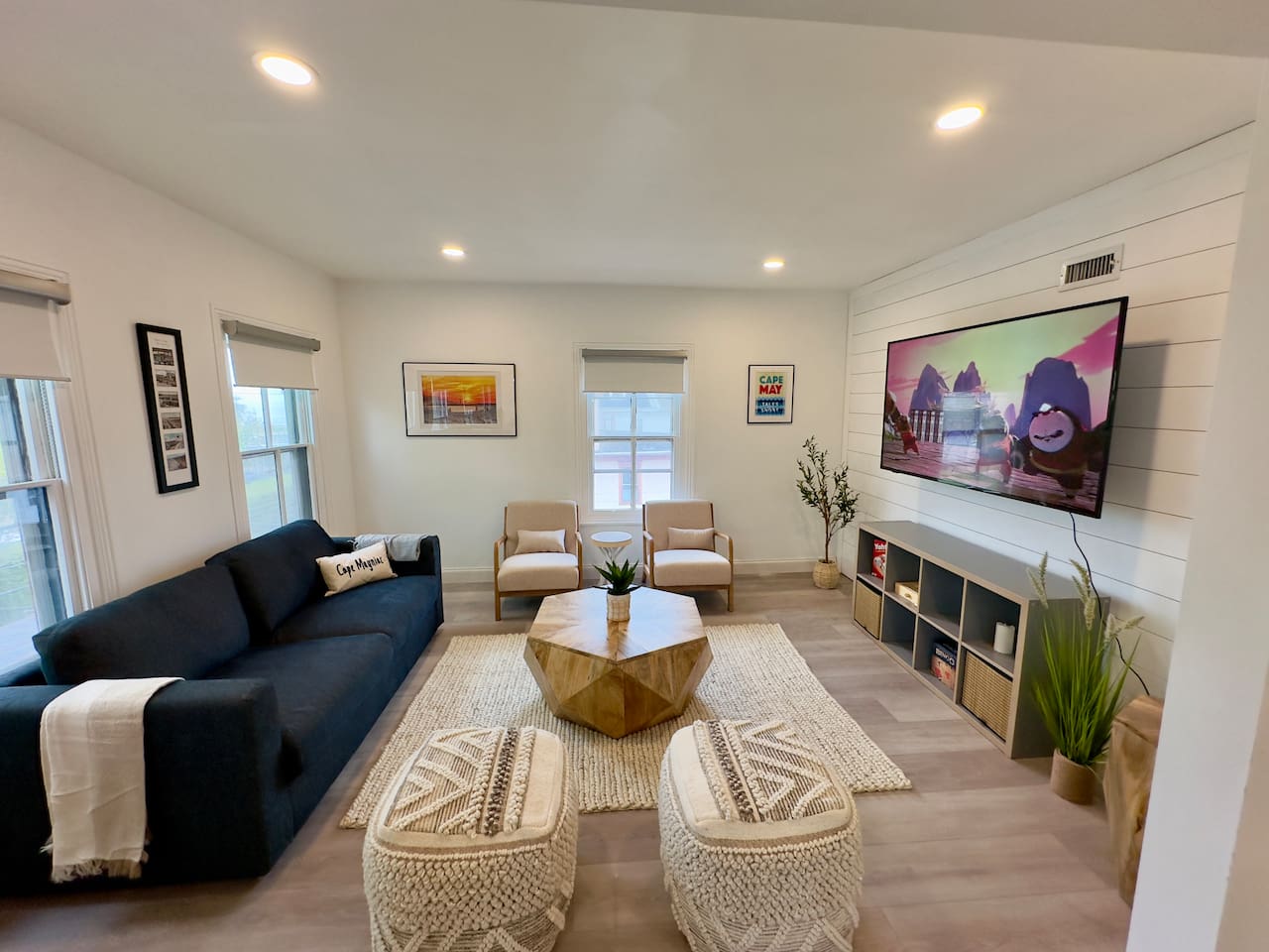 ☆☆ HIGHLIGHTS ☆☆ ✹ 2 spacious bedrooms; including a master suite with en-suite bathroom ✹ 2 full bathrooms ✹ Open-plan living area with large windows capturing ocean and town views ✹ Modern kitchen with high-end appliances and a 4-seater island ✹ Dining area adjacent to kitchen with ample seating ✹ Unique cupola with panoramic views and lounge chairs – perfect for sunset & wave watching ✹ Smart TVs in every room with access to Netflix, Amazon Prime, Disney+, and more ✹ 4 Complimentary beach passes and essential beach gear (only during the season, ie until mid September) ✹ Dedicated off-street parking and additional street parking ✹ Shared porch with traditional rocker chairs ✹ Fast Wi-Fi throughout the condo Guest Access: Entire condo is yours to enjoy, ensuring a private and uninterrupted experience. Keyless entry allows for a smooth self-check-in. Outdoor Space: Revel in the shared outdoor porch equipped with rocking chairs, ideal for relaxing and soaking in the coastal atmosphere. Activities/Attractions: Explore Cape May’s historic district, enjoy boutique shopping, or spend your days sunbathing and swimming at the beach. Don’t miss the local cuisine and the vibrant nightlife, all within walking distance! ★★ Book Today & Experience Cape May in Style! ★★ Other Things to Note: Ideal for up to 6 adults and 2 children. Check-in between 4 PM and 10 PM; Check-out at 10 AM. Embark on a vacation where the sea meets comfort and style. Reserve your stay at Cape Belvedere for a truly spectacular escape!
