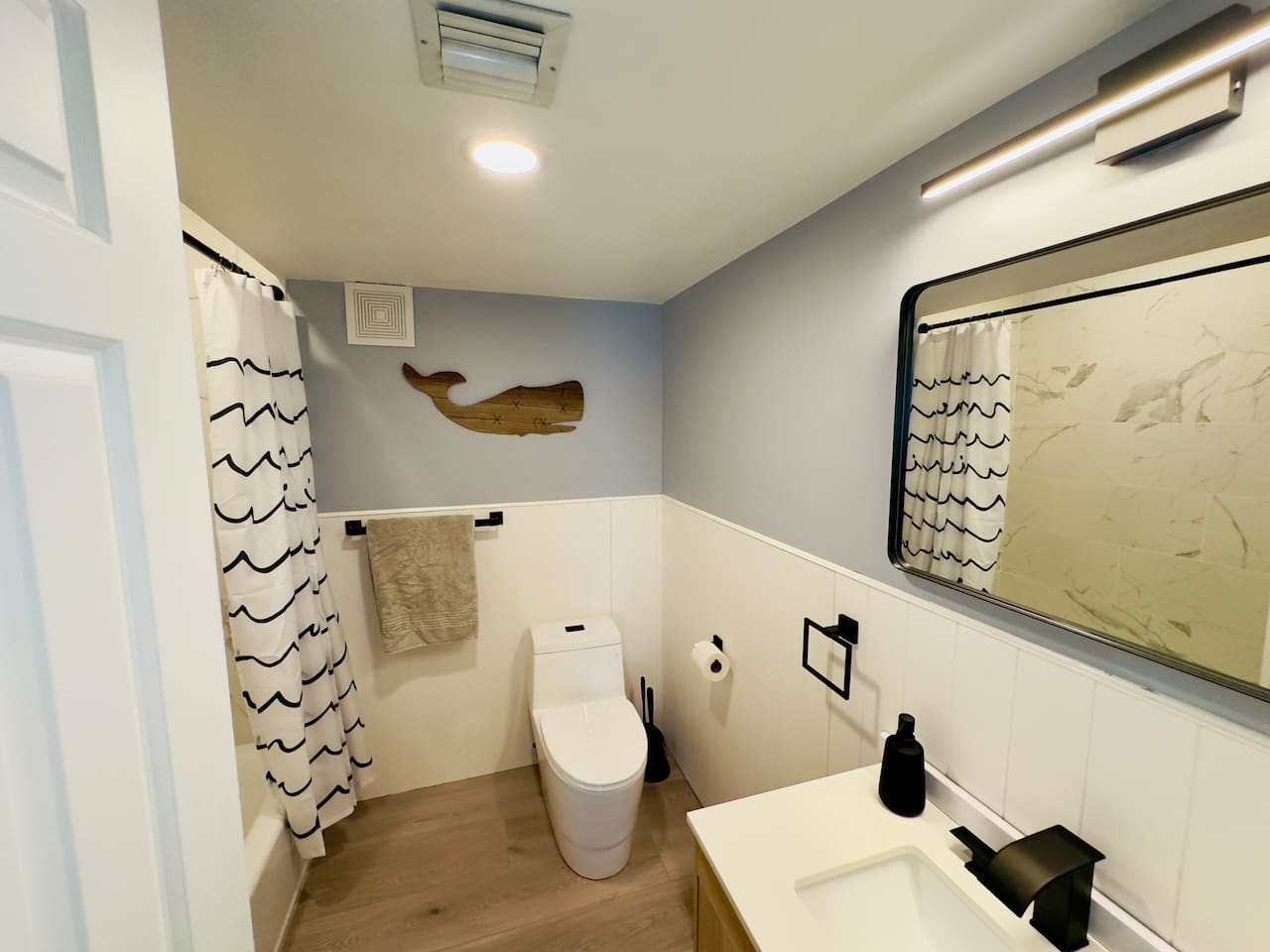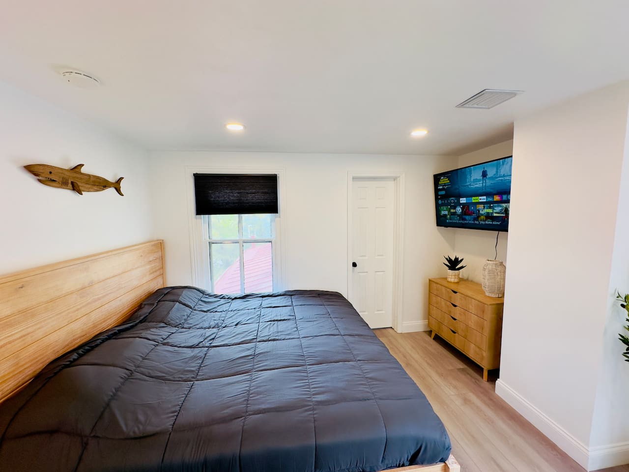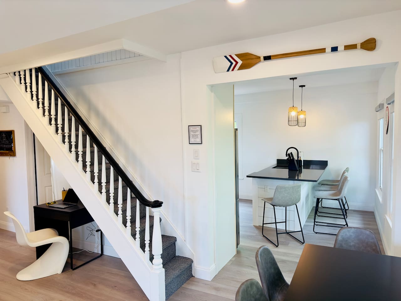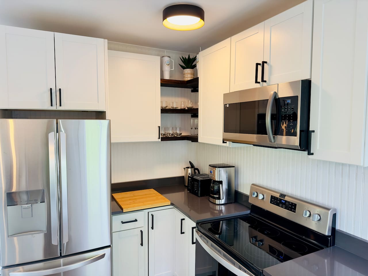 ☆☆ HIGHLIGHTS ☆☆ ✹ 2 spacious bedrooms; including a master suite with en-suite bathroom ✹ 2 full bathrooms ✹ Open-plan living area with large windows capturing ocean and town views ✹ Modern kitchen with high-end appliances and a 4-seater island ✹ Dining area adjacent to kitchen with ample seating ✹ Unique cupola with panoramic views and lounge chairs – perfect for sunset & wave watching ✹ Smart TVs in every room with access to Netflix, Amazon Prime, Disney+, and more ✹ 4 Complimentary beach passes and essential beach gear (only during the season, ie until mid September) ✹ Dedicated off-street parking and additional street parking ✹ Shared porch with traditional rocker chairs ✹ Fast Wi-Fi throughout the condo Guest Access: Entire condo is yours to enjoy, ensuring a private and uninterrupted experience. Keyless entry allows for a smooth self-check-in. Outdoor Space: Revel in the shared outdoor porch equipped with rocking chairs, ideal for relaxing and soaking in the coastal atmosphere. Activities/Attractions: Explore Cape May’s historic district, enjoy boutique shopping, or spend your days sunbathing and swimming at the beach. Don’t miss the local cuisine and the vibrant nightlife, all within walking distance! ★★ Book Today & Experience Cape May in Style! ★★ Other Things to Note: Ideal for up to 6 adults and 2 children. Check-in between 4 PM and 10 PM; Check-out at 10 AM. Embark on a vacation where the sea meets comfort and style. Reserve your stay at Cape Belvedere for a truly spectacular escape!