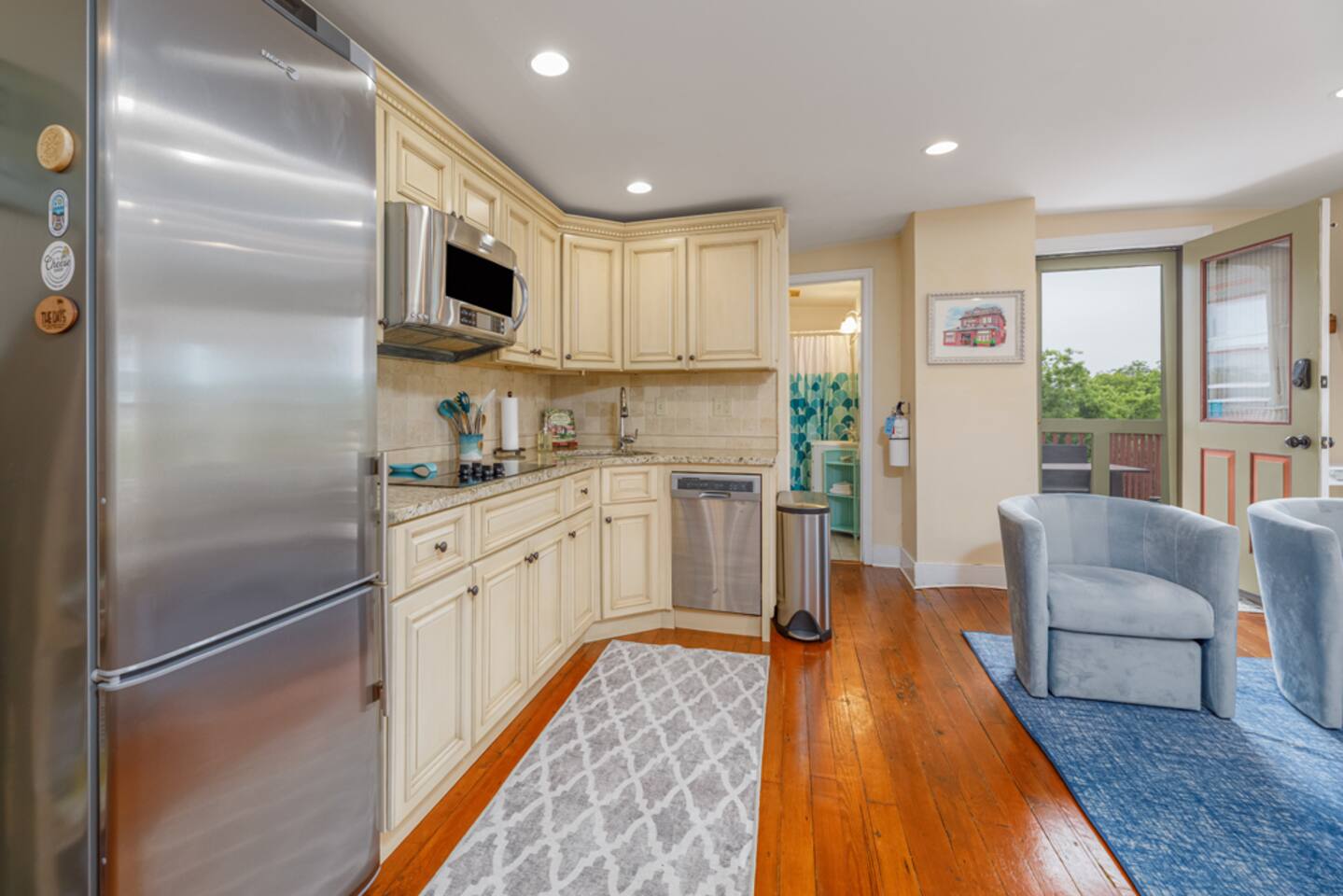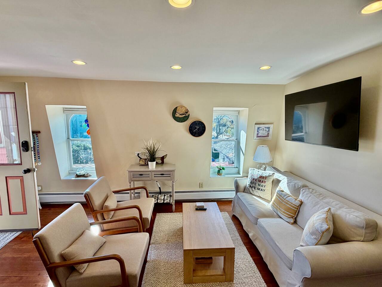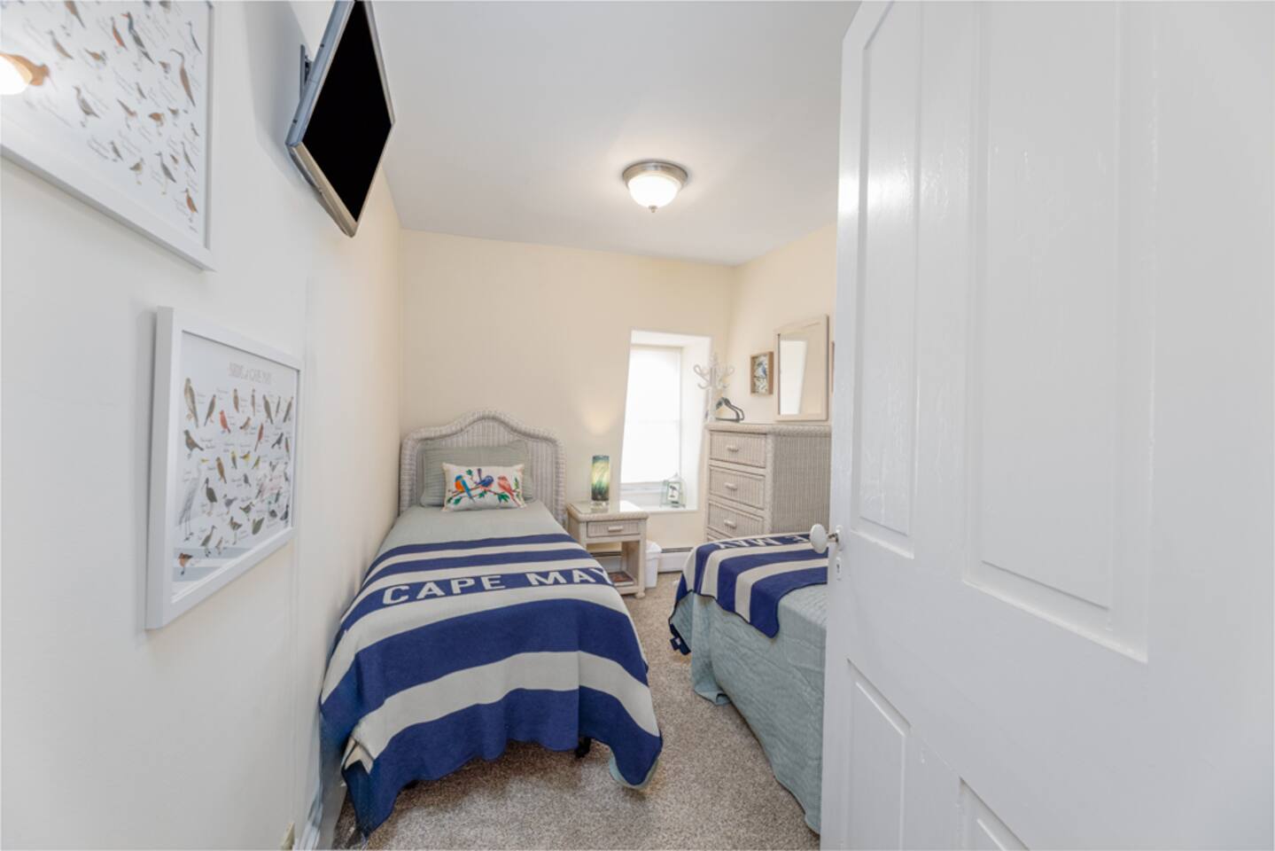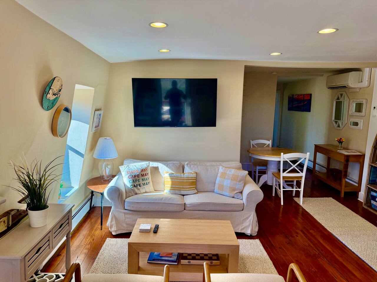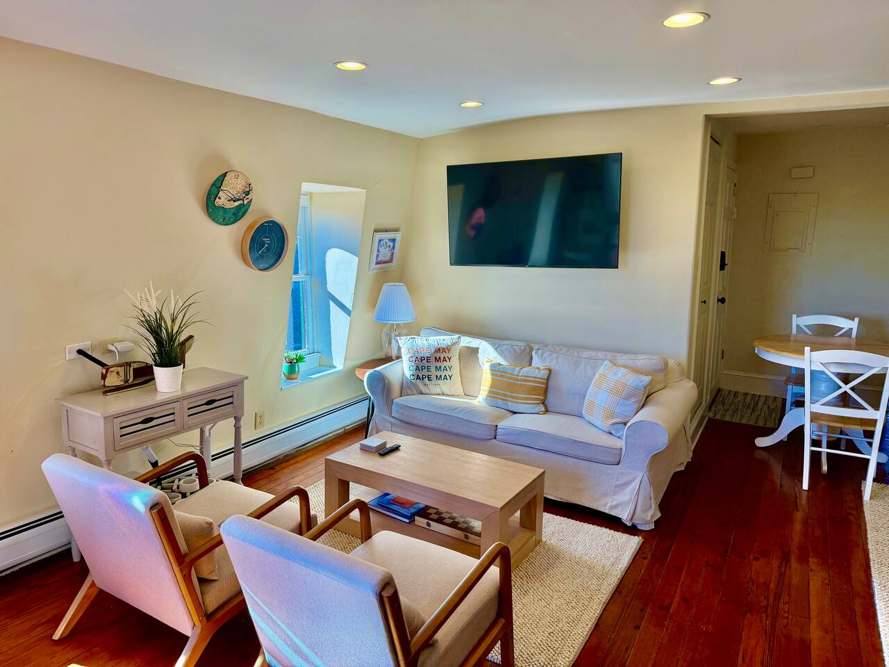 Prime Location: Step out and you’re just a 5‑minute walk to Cape May’s pristine beaches and one block from the Washington Street Mall, home to boutique shops, restaurants, and entertainment. Park your car and explore everything on foot. Comfortable Living: • Two private bedrooms with a plush queen beds and two twins. • Two modern bathrooms (including an en‑suite), stocked with fluffy towels, shampoo, conditioner, and body wash. • Open‑concept living area featuring a cozy sitting room, dining table, and fully equipped kitchen (stainless‑steel appliances, coffee maker, microwave, oven, cookware, and baking sheet). • A/C and ceiling fans to keep you cool after a day in the sun. • Fast Wi‑Fi, smart TV, board games, books, and reading material for rainy days. • Private entrance with keypad access for easy, contactless check‑in. Additional Amenities: Beach Tags & Essentials, bed linens, towels, coffee and tea supplies, cooking basics, cleaning products, crib on request, and safety features (smoke and carbon monoxide alarms). Why You’ll Love It: Stay in a historic home with modern comforts, walk everywhere, and enjoy Cape May’s coastal charm. Perfect for families, couples, or friends seeking a relaxing seaside getaway.