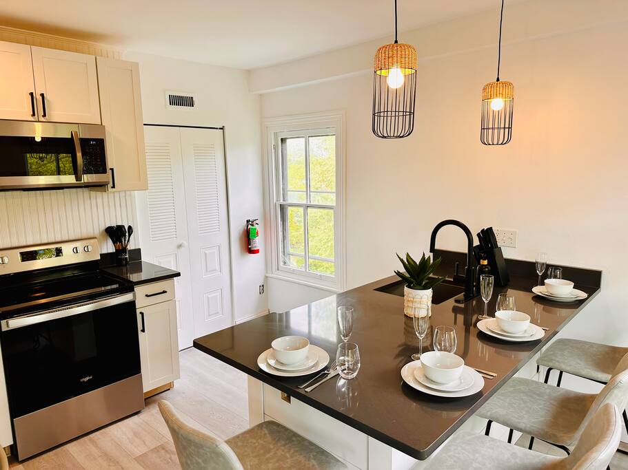 ☆☆ HIGHLIGHTS ☆☆ ✹ 2 spacious bedrooms; including a master suite with en-suite bathroom ✹ 2 full bathrooms ✹ Open-plan living area with large windows capturing ocean and town views ✹ Modern kitchen with high-end appliances and a 4-seater island ✹ Dining area adjacent to kitchen with ample seating ✹ Unique cupola with panoramic views and lounge chairs – perfect for sunset & wave watching ✹ Smart TVs in every room with access to Netflix, Amazon Prime, Disney+, and more ✹ 4 Complimentary beach passes and essential beach gear (only during the season, ie until mid September) ✹ Dedicated off-street parking and additional street parking ✹ Shared porch with traditional rocker chairs ✹ Fast Wi-Fi throughout the condo Guest Access: Entire condo is yours to enjoy, ensuring a private and uninterrupted experience. Keyless entry allows for a smooth self-check-in. Outdoor Space: Revel in the shared outdoor porch equipped with rocking chairs, ideal for relaxing and soaking in the coastal atmosphere. Activities/Attractions: Explore Cape May’s historic district, enjoy boutique shopping, or spend your days sunbathing and swimming at the beach. Don’t miss the local cuisine and the vibrant nightlife, all within walking distance! ★★ Book Today & Experience Cape May in Style! ★★ Other Things to Note: Ideal for up to 6 adults and 2 children. Check-in between 4 PM and 10 PM; Check-out at 10 AM. Embark on a vacation where the sea meets comfort and style. Reserve your stay at Cape Belvedere for a truly spectacular escape!